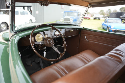 The 1935 Ford Phaeton "Philomena" is a masterpiece of vintage craftsmanship, combining timeless elegance with a powerful Flathead V8 engine that delivers a smooth yet commanding ride. With its open-top design and flowing lines, "Philomena" captures the essence of 1930s luxury, once favored by Hollywood icons and dignitaries alike.